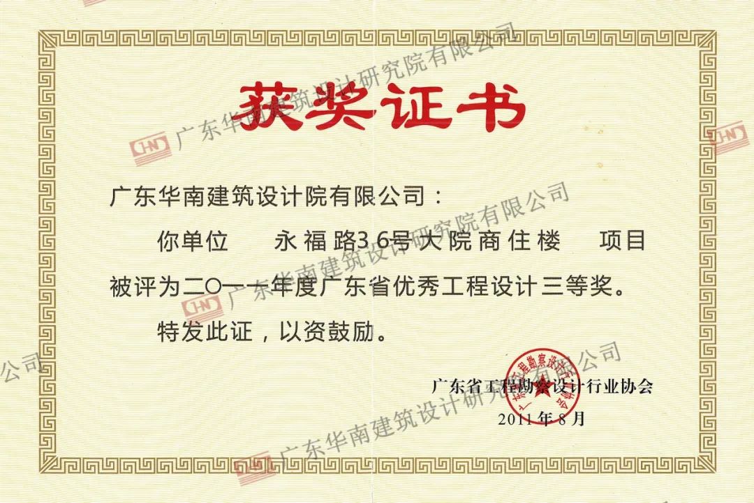 2012中國建筑學會照明周刊杯設計大賽廣東賽區三等獎、全國總決賽優勝獎